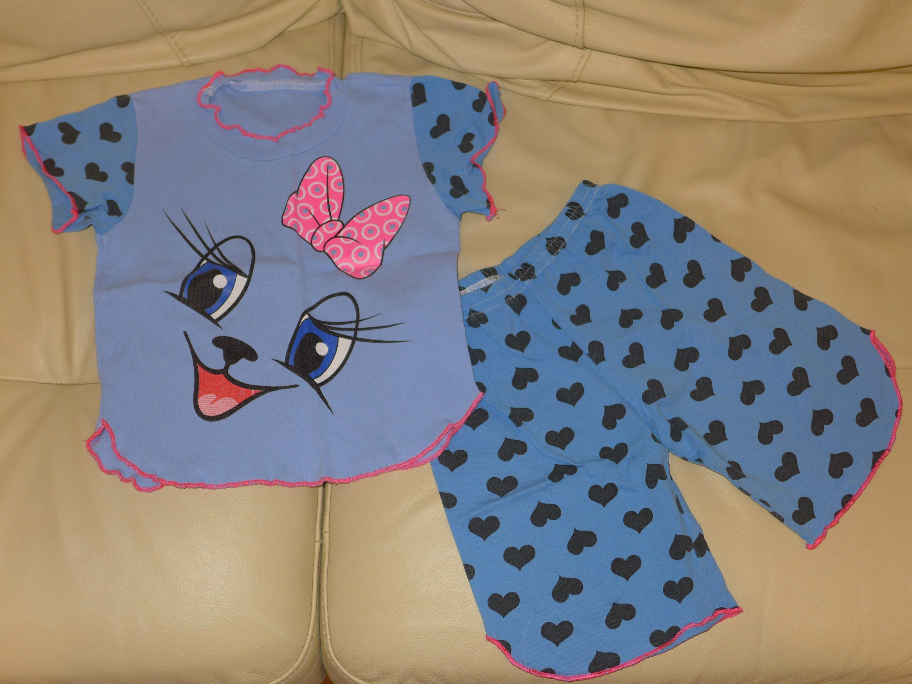 Средней плотности трикотаж на грудке и спинке, рукава и штанишки из более тонкого трикотажа.