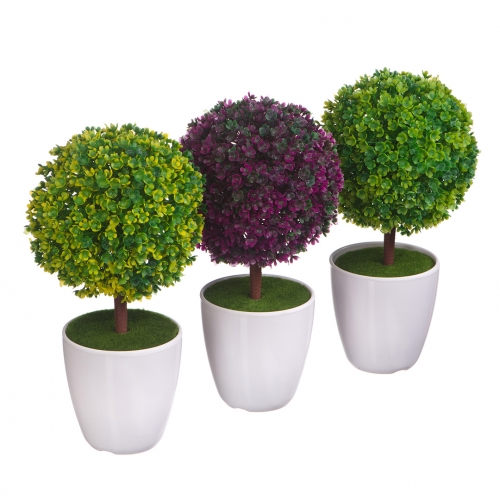 Дерево с шаровидной формой в керамическом кашпо выглядит очень стильно. Такое украшение интерьера понравится каждому. Высокое качество и реалистичность исполнения позволяют размещать композицию не только дома, но и в кафе, ресторанах, офисных помещениях.