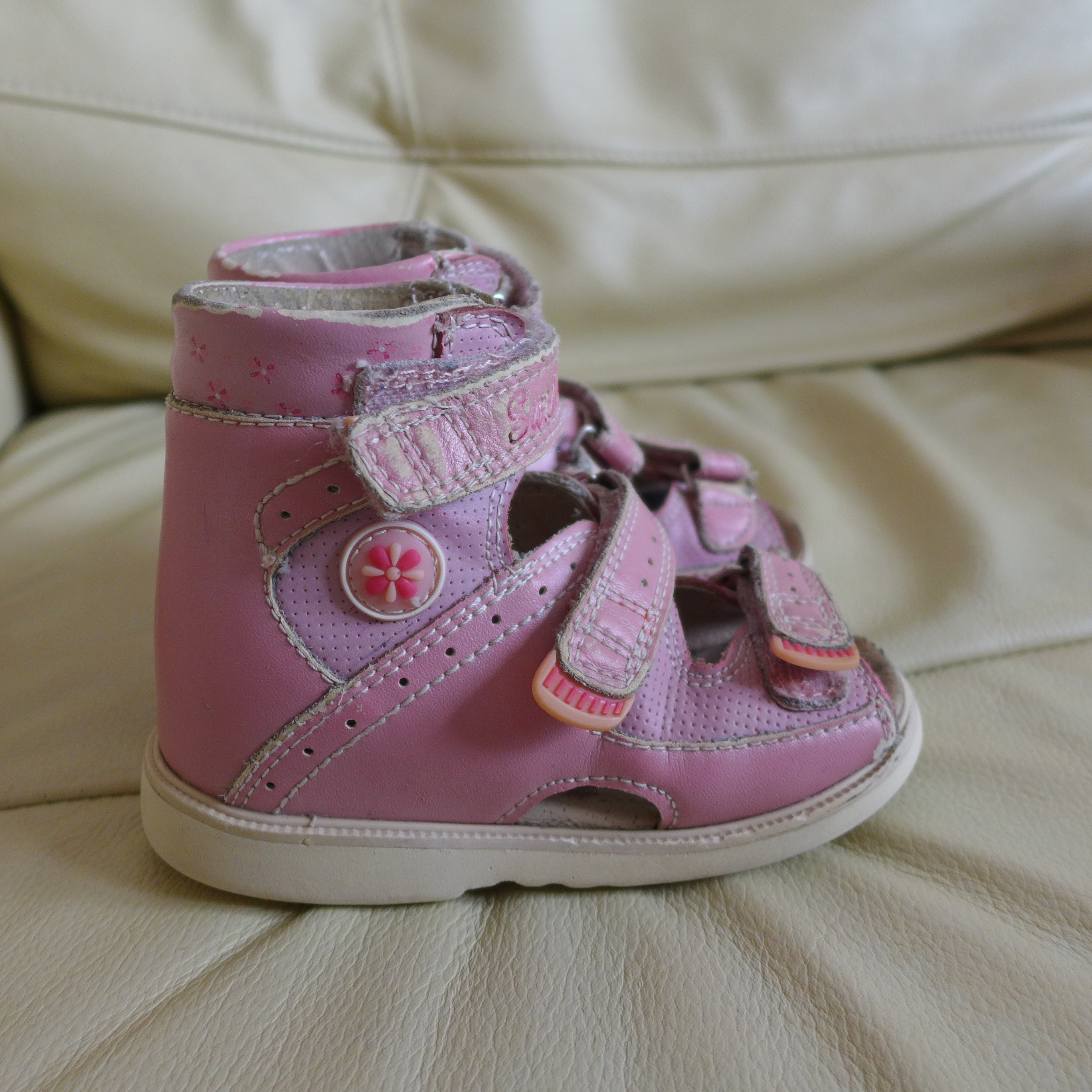 Жесткий задник. Стелька не съемная, без супинатора. Носили с пулустелькой, стелька на фото дальше. Ортопедия в порядке, т.к. носили с вкладной стелькой. Носили сандали только дома.