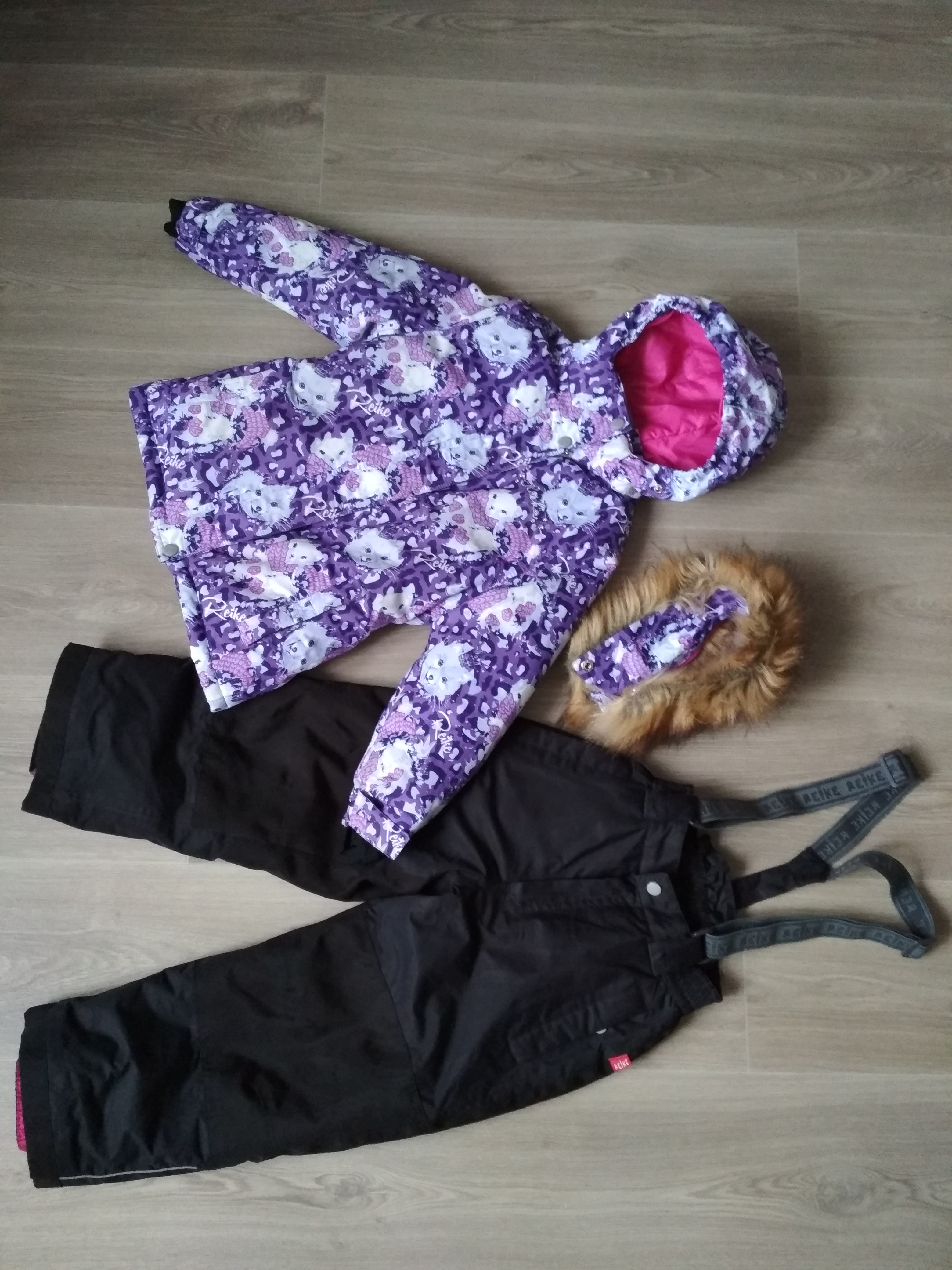 Куртка приталенного силуэта дополнена съемным регулирующимся капюшоном с отстегивающейся меховой опушкой и двумя карманами на липучках, сзади на талии резинка. Ветрозащитная планка на кнопках и липучках вдоль молнии. Манжеты регулируются липучками, внутри манжеты из полиэстера с отверстием для большого пальца.